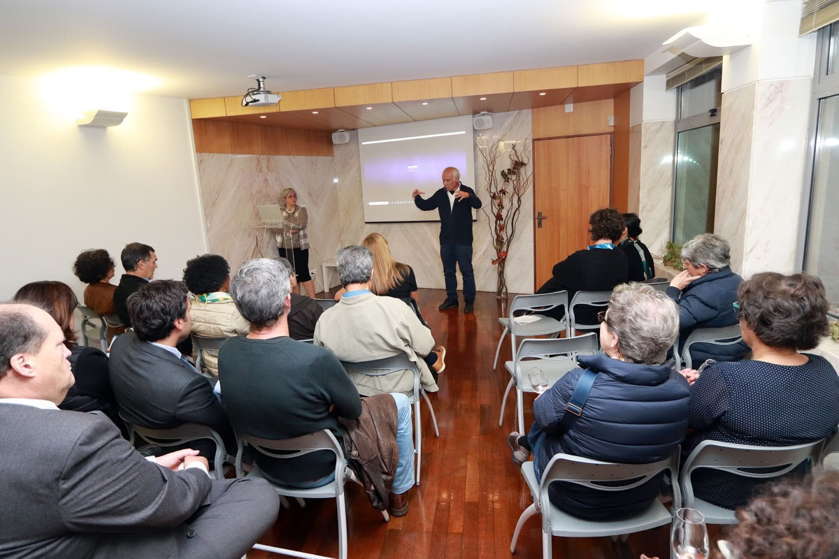 Foi no acolhedor Centro Cultural Penedo da Saudade, esta sexta-feira dia 18, que teve lugar a anunciada conversa sobre “Vinho e Sustentabilidade”. Com a presença do produtor de vinhos em modo de produção biológico certificado, José Perdigão, aprendemos sobre alguns detalhes que fazem a diferença para que o vinho seja considerado “amigo do ambiente”. Começando pela instalação da própria vinha com a escolha da melhor orientação solar, ventos dominantes, o relevo e consequente drenagem das águas subterrâneas ou pluviais, o apoio de uma arborização modelo. Ou ainda a não utilização de herbicidas, a instalação de painéis solares e fotovoltaicos, a calibragem permanente das alfaias agrícolas e dos pulverizadores, a reciclagem de barricas, a utilização de rolhas de cortiça natural e de microgranulado, o peso do vidro das garrafas… Tudo prácticas para uma produção mais sustentável e respeitadora do ambiente!
