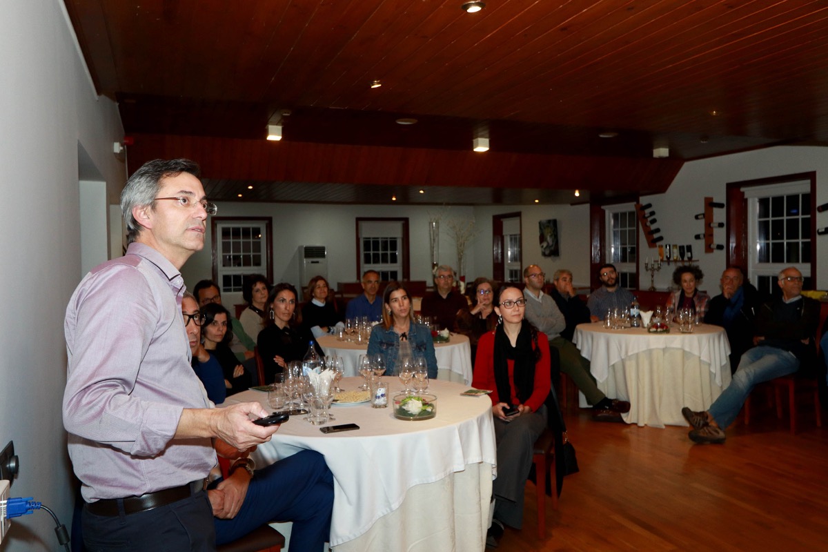 José Miguel Meneses de Almeida foi o nosso ilustre enólogo convidado, conduzindo-nos pela surpreendente Região Demarcada da Bairrada. Durante mais de duas horas, 8 distintas provas deram-nos a conhecer os aromas, os sabores e o carácter dos vinhos da Bairrada, em suma, o que faz deles uma marca reconhecível. Sábios conselhos sobre o antes, o durante e o depois de servir um vinho foram partilhados com todos os presentes. Sucederam-se as diferentes provas: brancos, espumantes, tintos e colheita tardia. Provar um vinho revelou-se um exercício de apurada sensibilidade, uma experiência dos sentidos, uma viagem por imagens e memórias olfactivas, graças à condução brilhante da “Prova Comentada” pelo nosso convidado, o qual mereceu um forte e merecido aplauso no seu final. O testemunho de uma das participantes, Ana Cristina Pinto Sá, resume bem o espírito da sessão à qual tivemos o privilégio de assistir: