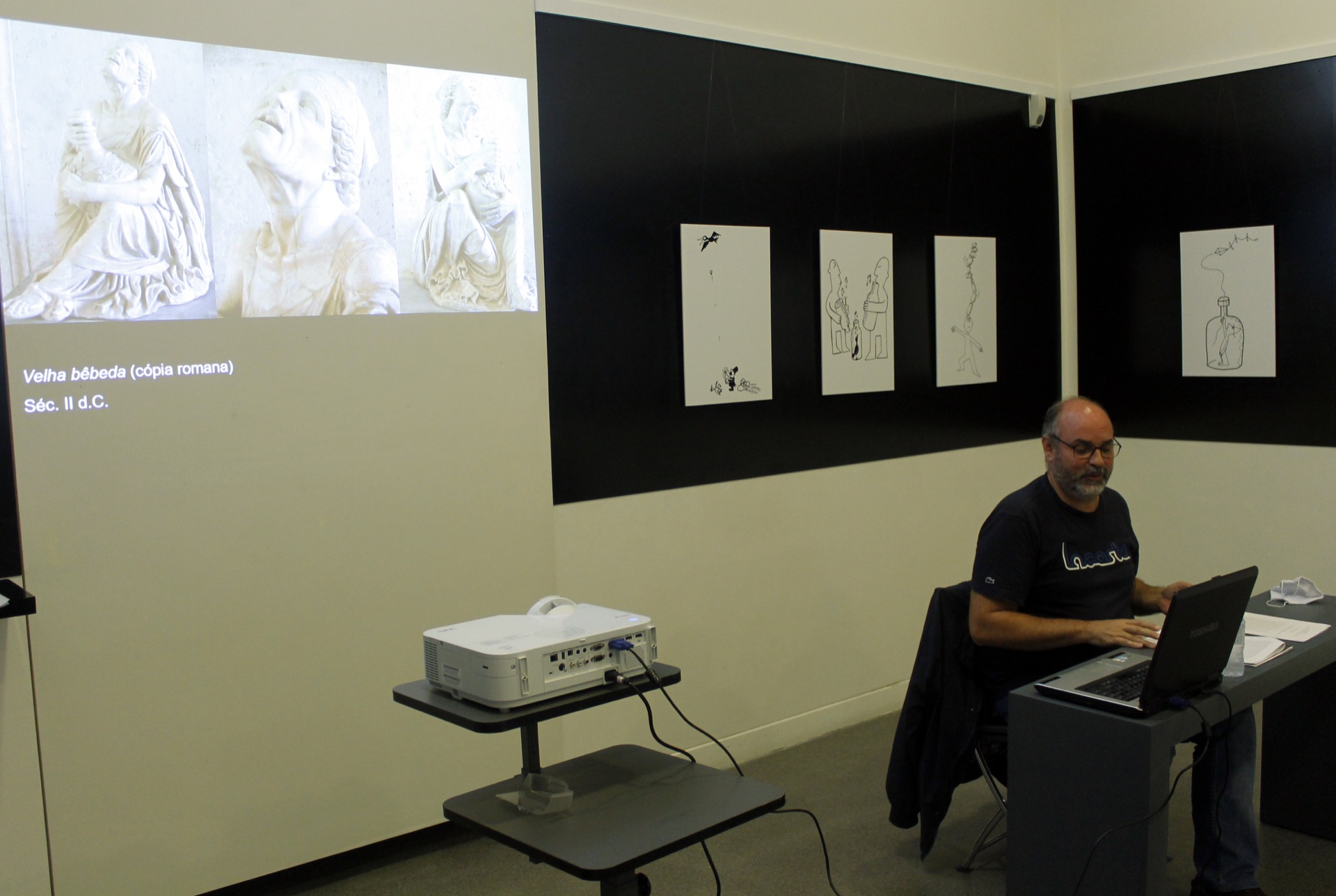 Nesta 3ª edição de “O Mundo do Vinho” a arte também se fez representar nas palestras organizadas no Museu Nacional de Machado de Castro. Das horas felizes aos momentos mais sombrios observámos como as artes plásticas se expressaram sob a influência de Baco. Numa viagem longa, percorrida em duas etapas, dos primórdios da humanidade até à actualidade, Pedro Miguel Ferrão conduziu-nos de forma conhecedora e cativante**,** dando a ver diversas obras inspiradas pelo vinho e pelo uso do álcool, entre Pintura, Ilustração e Escultura, acompanhadas pontualmente por poemas, citações ou provérbios inspirados no álcool. Como esta Máxima dionisíaca de que guardamos memória: