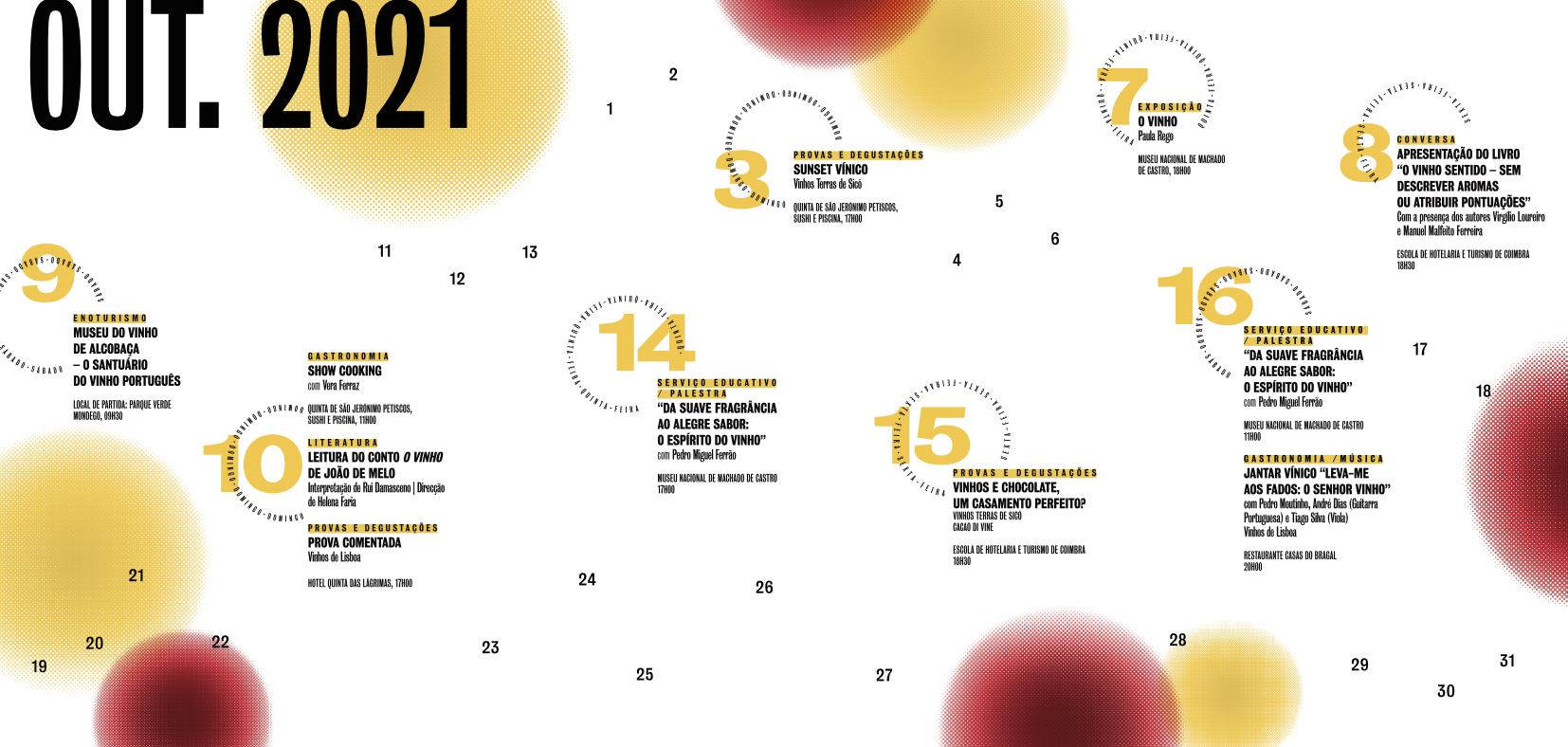 O vinho é o natural protagonista da programação, ocupando esta diferentes espaços da cidade de Coimbra. Exposição de Desenhos, Jantar Vínico com Fados de Lisboa, Leitura Encenada, Apresentação de Livro, Palestra, Enoturismo, Provas de Vinhos e Degustações são as actividades propostas. Paula Rego, Pedro Moutinho, André Dias, Tiago Silva, Rui Damasceno, Helena Faria, Virgílio Loureiro, Manuel Malfeito Ferreira, Pedro Miguel Ferrão, Gonçalo Moura Costa, José Miguel Meneses de Almeida, Vera Ferraz, Dina Ventura e Nuno Andrade, marcam presença em OMV, com a sua arte, talento, saber e generosidade.